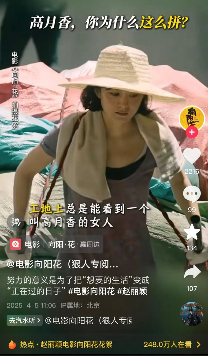 从40分钟之后的高月香出狱开始,影片质量迅速下降,又碎又尬又慢的剧情彻底摧毁了艺绽君的观影体验。现在不少电影都照着短视频风格拍,主打一个碎片化叙事,每场戏都要制造一个爆点。《向阳·花》仿佛就是照着短视频爆款写出来的定制剧本,我都能猜到哪几场戏片方这么拍的目的,是为了到时候能剪辑成短视频切片,然后疯狂营销。